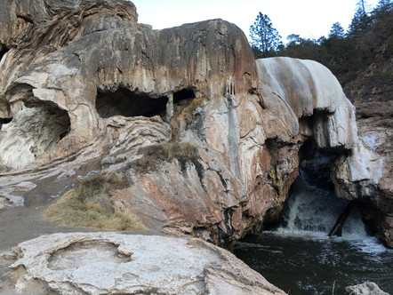 I drove down towards Jemez Springs proper, seeking a wild place to sleep. A final sidetrack led me to Soda Dam, a football field length worth of spring mineral accumulation that forms a natural dam and waterfall - a truly unique sight and - phew! - smell. I found a National Forest road, and just before losing hope of finding campable spaces as the road became nearly too chunky for the car, I stumbled into the parking area for a secluded campsite close to the road. I set up camp and enjoyed stargazing for a considerable time, enhanced by a single shooting star while jamming out to barely audible bluegrass tunes. It was a nearly perfect night of sleep despite that earlier beer needing to be let out at 2am and then again at 4am.